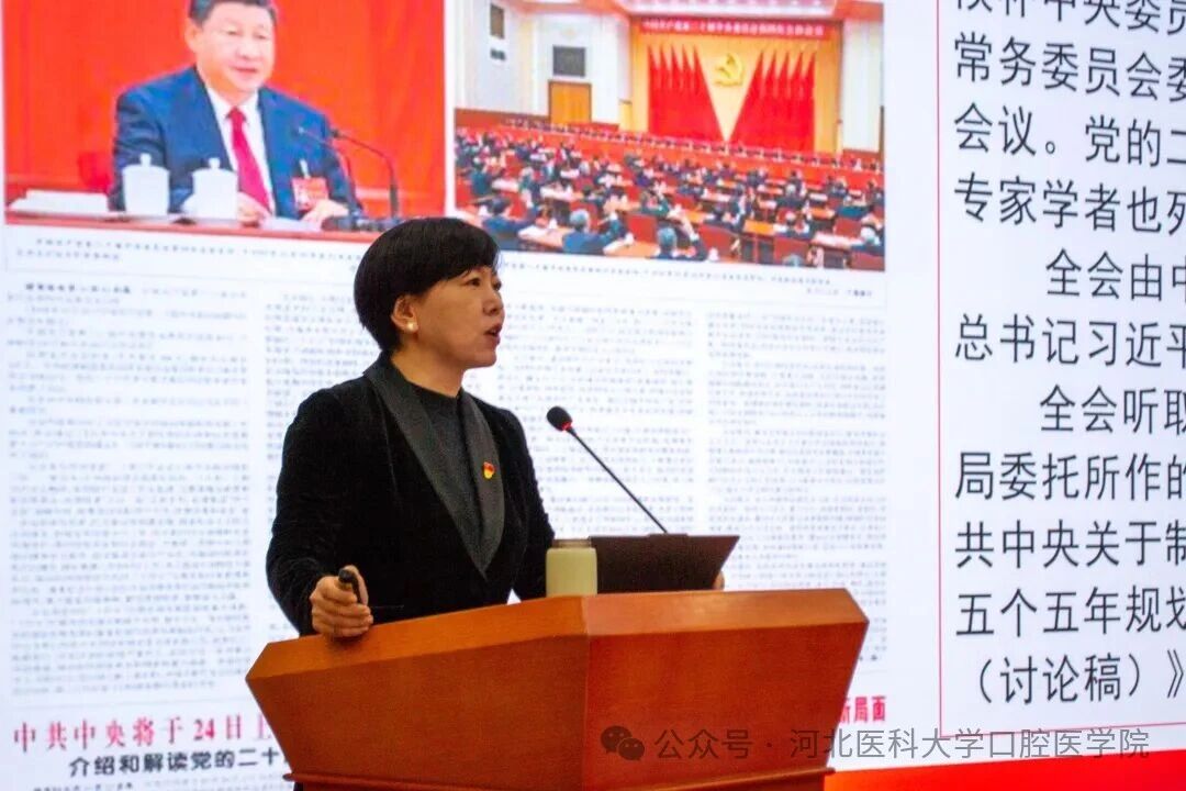为落实学校“中国共产党人精神谱系”宣讲工作、传达党的二十届四中全会精神,12月8日晚,口腔医学院在西教学楼二楼报告厅举办“中国共产党人精神谱系”宣讲系列活动——党的二十届四中全会精神解读。我院特邀中共河北省党校(河北行政学院)王宁教授带来专题演讲,口腔医(学)院副院长刘庆、辅导员韩丽红及口腔医学院全体学生参与了此次讲座。