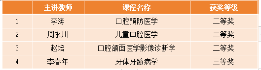 近日,河北医科大学第六届教师教学创新大赛决赛落下帷幕。本届大赛由教师发展中心主办,共吸引了来自各学院(部)、直属及附属医院的49名教师(团队)参赛。我院选拔推荐的4支教师团队全部获奖,口腔预防医学教研室李涛教师团队、儿童口腔医学教研室周永川教师团队、口腔颌面医学影像诊断学教研室赵培教师团队分别荣获正高组、副高组、中级及以下组二等奖,牙体牙髓病学教研室李春年教师团队获课程思政组三等奖。