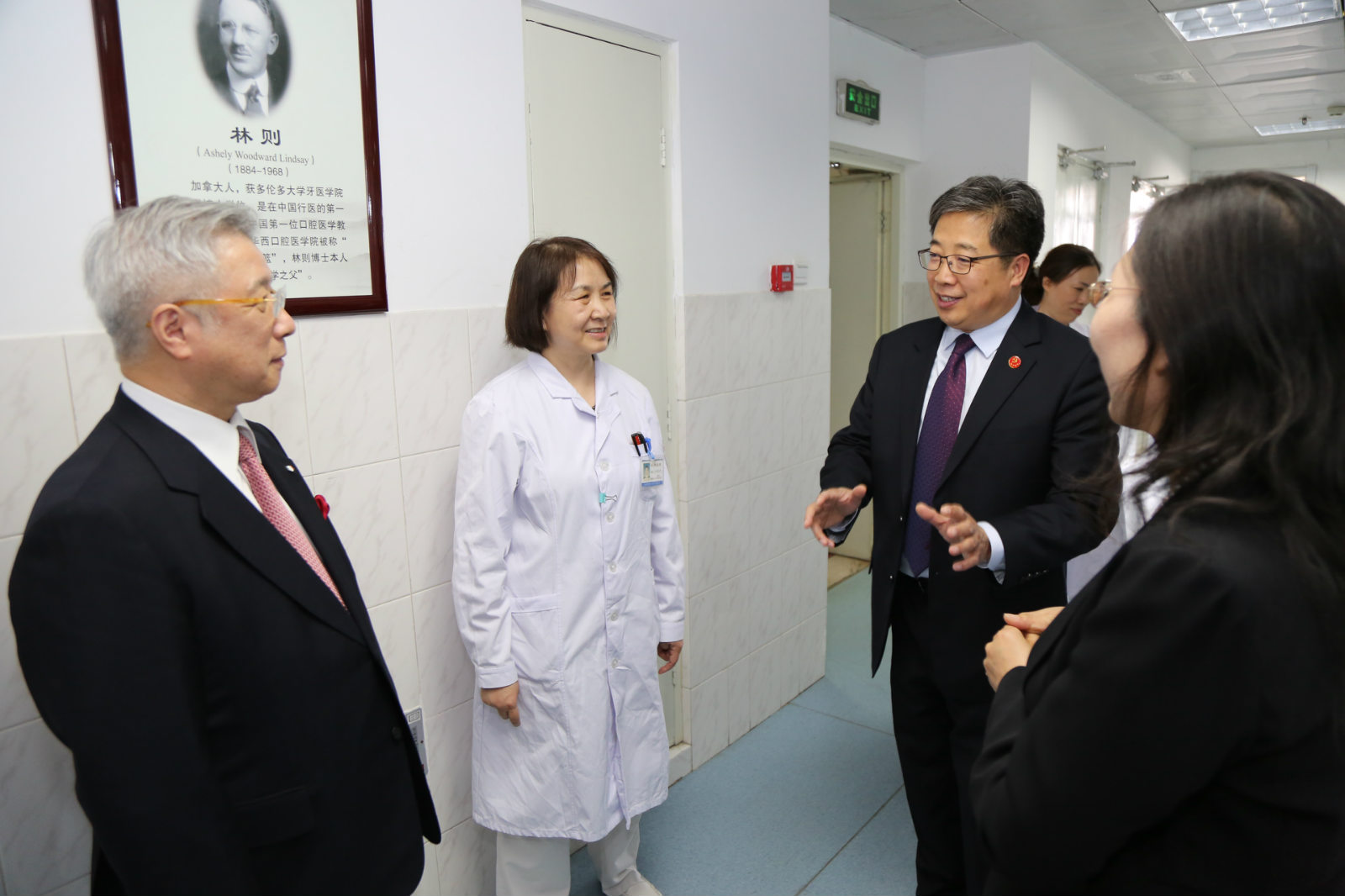 矢崎雅理事长先后参观了我院口腔内科、儿童口腔科、口腔正畸科、口腔修复科和口腔医学教学实验中心,围绕医院医疗现状、机构设置、仪器设备、教学模式等内容进行了询问和交流,特别参观了已装修完工的新诊室,给予了高度评价。