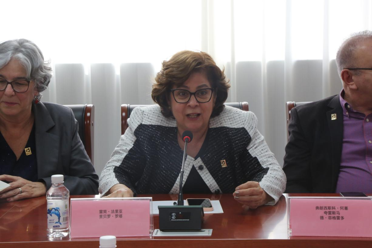 戈亚斯联邦大学校长安杰丽塔·佩雷拉·德·利马介绍了巴西戈亚斯联邦大学的基本情况,国际关系事务办公室主任、口腔学院教授雷简·法里亚·里贝罗·罗塔就戈亚斯联邦大学口腔学院的教学、科研及国际交流等方面进行了介绍,希望未来能够与我院在师生交流、科研等方面开展深入合作。