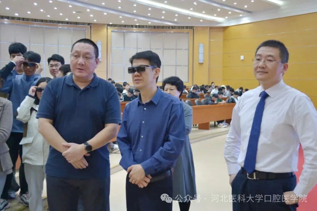 讲解结束后的互动环节中,李老师邀请老师和同学们通过3D眼镜观察口腔手术的真实过程。同学们积极参与其中,对口腔医学技术的发展及手术操作有了更加深刻的认知,这激励着同学们认真学习专业知识,在临床实践中发掘创新需求,在时代浪潮中找准创新方向。